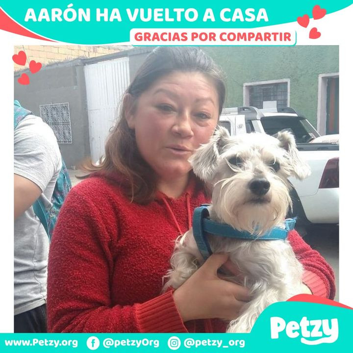 A Aarón 🐕 lo dejaron escapar de una veterinaria 😞 Y después de casi 2 meses ha vuelto a casa 😊 unas buenas personas lo acogieron y lo cuidaron ❤️ y han acordado que lo mejor es que Aarón regrese con su mamita humana 🥳 gracias, a todas las personas que siempre confían en que un compartir no sobra y se toman el tiempo de ayudar a difundir 🙏🏼