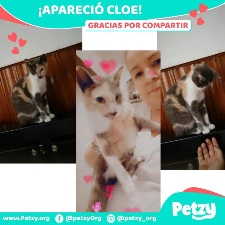 Cloe 🐱 está de vuelta con su familia 🎉 desde esta mañana y queremos compartirles esta feliz noticia 🥳 mil gracias 🤗 a cada una de las bellas personas 🥰 que ayudaron con la difusión y búsqueda ❤️