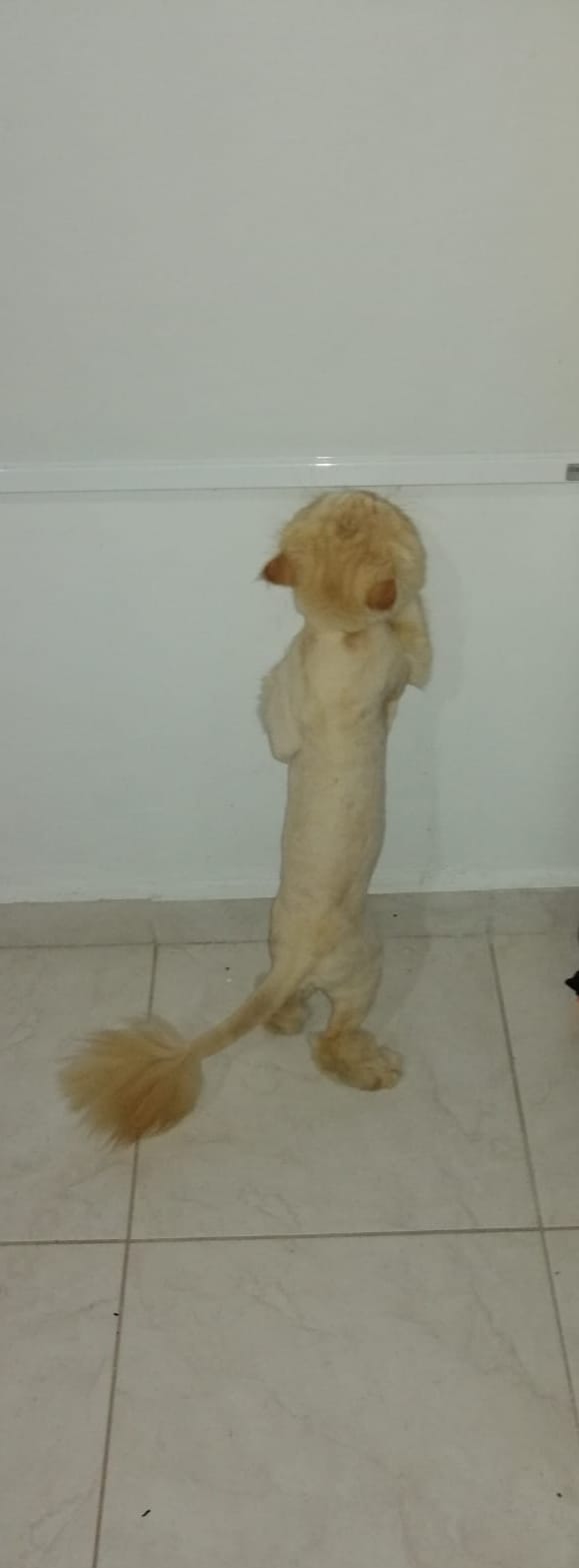 ✅ Es de color amarillo ladrillo, está peluqueado tipo León, con pelo en la cabeza, las 4 patas y al finalizar la cola larga, tiene ojos cafés. El resto del cuerpo tiene pelo de más o menos 5 mm.
